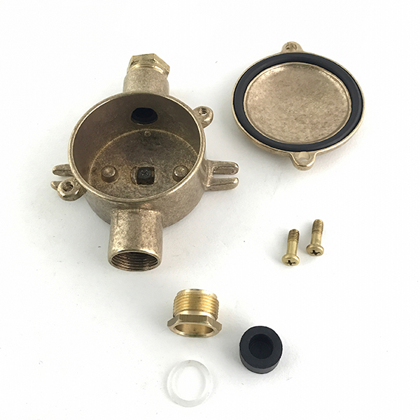 Schalter aus Messing für die offene Installation. Mit Einlass- und Auslassrohr