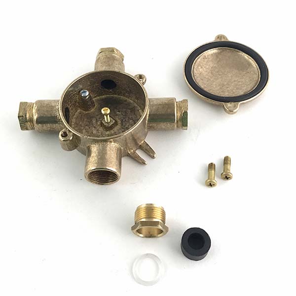 Schalter aus Messing für die offene Installation. Mit Einlass- und Auslassrohr