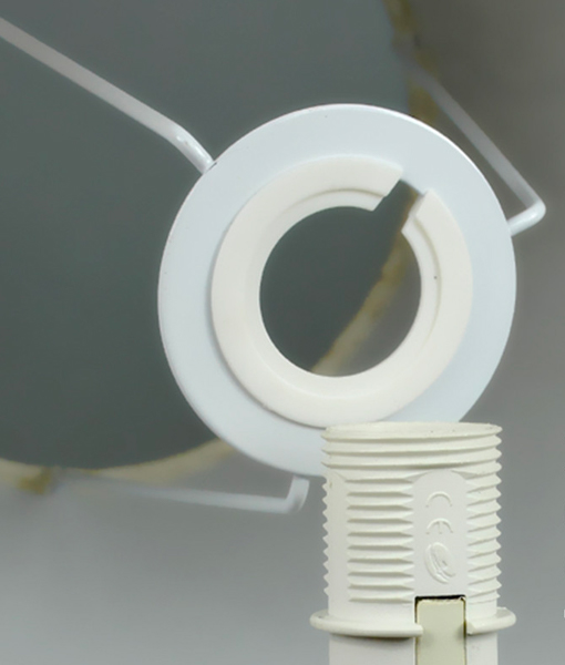 Es wird im Innern des Schirms platziert, dadurch wird der Durchmesser verringert und so erreicht dass weder der Schirm durchrutscht noch das Schraubgewinde sich bewegt. Ideal um moderne Lampenschirme an Hängelampen oder klassische alte Stehlampen mit der klassischen Lampenfassung E-27 aus Messing zu verwenden.