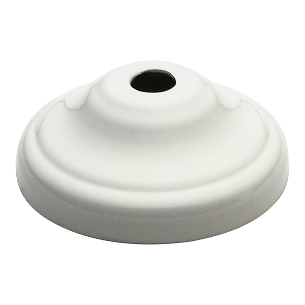 Metallbaldachin flach in der Farbe gebrochenes Weiß. Seine Farbbeschichtung erzeugt einen Effekt von Keramikoberfläche. Teil zur Deckenmontage zum Verdecken der Lampenverbindung.