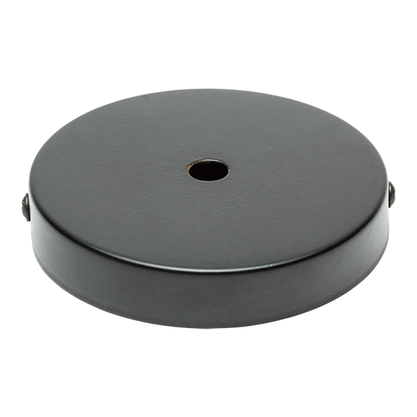 Baldachin aus Metall flach in der Farbe Schwarz. Teil zur Deckenmontage und zum Verdecken der Lampenverbindung.