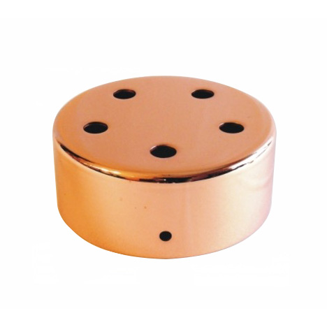 Metallbaldachin in Oberfläche Kupfer. Teil zur Deckenmontage zum Verdecken der Lampenverbindung. Mit fünf Löchern für fünf Kabelausgänge. Enthält Kit für Montage mit kupferfarbenen Schrauben.