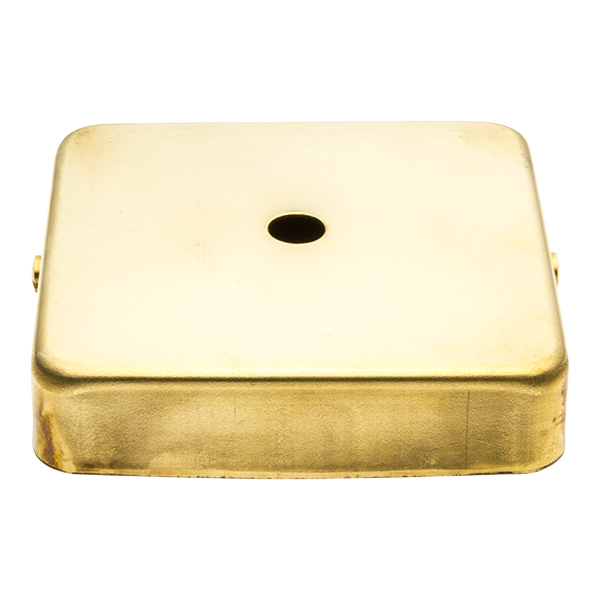 Metallbaldachin flach hergestellt aus Messing, zur Deckenmontage und zum Verdecken der Lampenverbindung. Seine quadratische Form macht ihn etwas speziell, indem er sich von den klassischen runden Baldachinen unterscheidet.