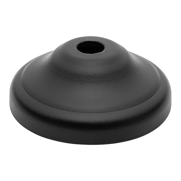 Metallbaldachin flach in Farbe Schwarz. Seine Farbbeschichtung erzeugt einen Effekt von rauer Oberfläche. Teil zur Deckenmontage und zum Verdecken der Lampenverbindung.