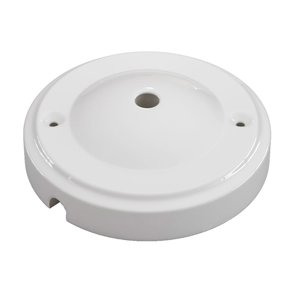 Baldachin Anschluss aus Porzellan Zierblende. für die Decke mit Kabelausgang. Verdeckt den Stromanschluss. Ideal für die Montage von Hängeleuchten. Nützlich als Deckenbaldachin. Zwei seitliche Kabelausgänge