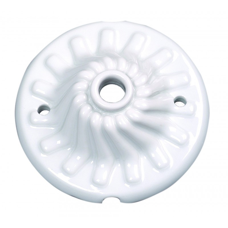 Baldachin Anschluss aus Porzellan Zierblende für die Decke mit Kabelausgang. Verdeckt den Stromanschluss. Ideal für die Montage von Hängeleuchten. Nützlich als Deckenbaldachin.