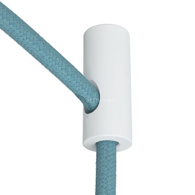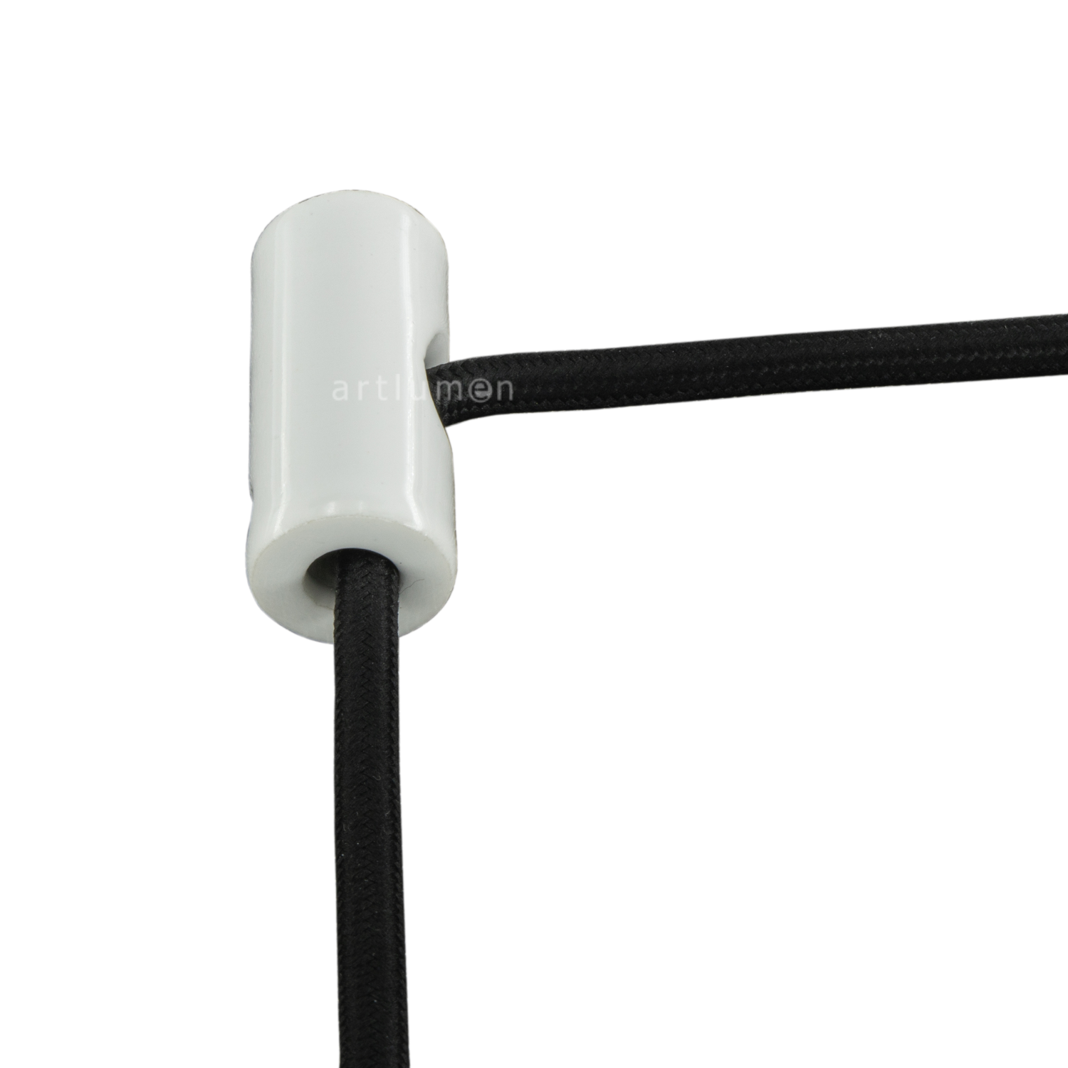 Deckenbefestigung aus Porzellan weiß für Textilkabel. Diese Befestigung ermöglicht Ihnen Ihre Beleuchtung individuell im Raum zu platzieren und das dekorativen Kabel an der Decke ab zu hängen. Ideal für dekorative sichtbare Installationen, in denen ein röhrenförmiges Textilkabel verwendet wird.