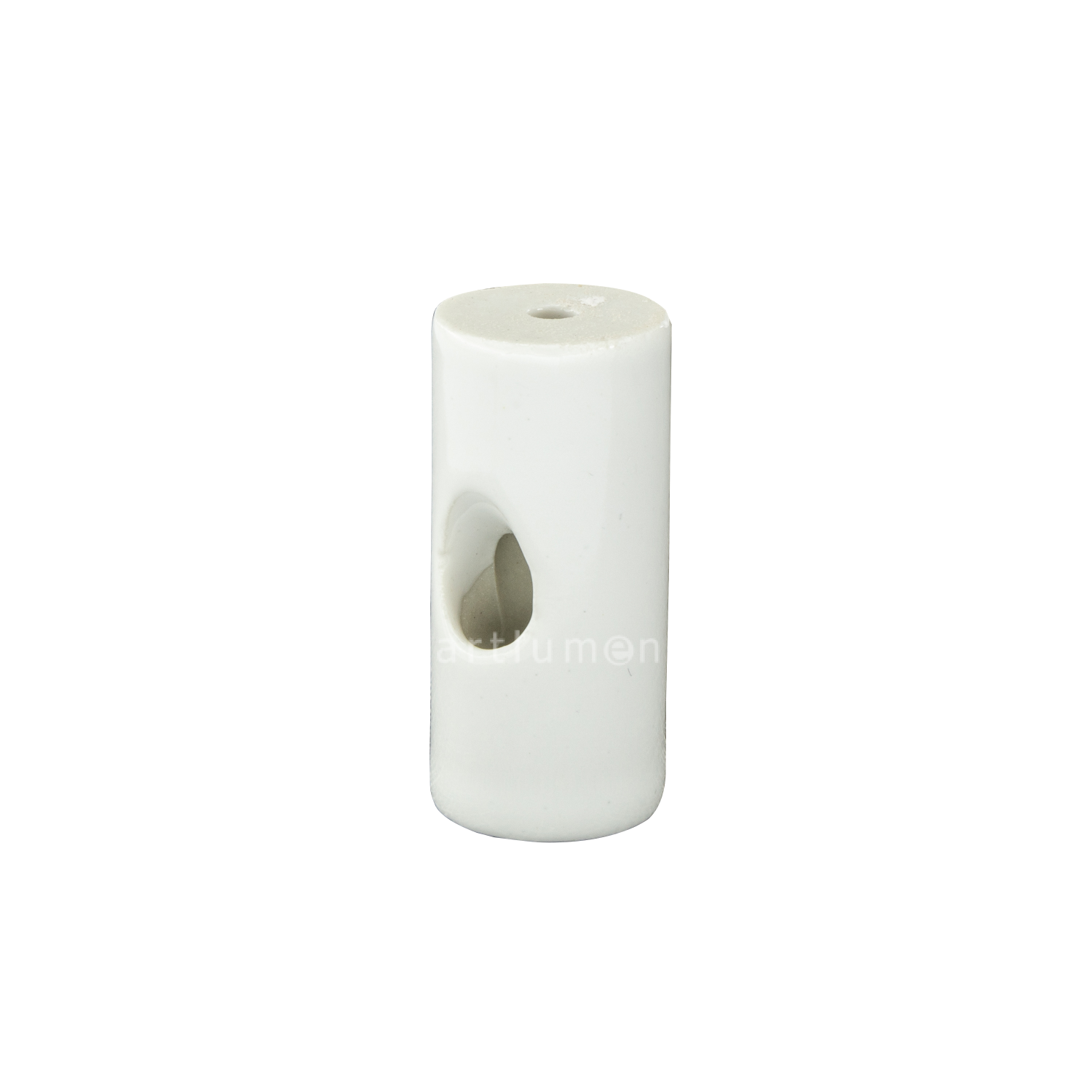 Deckenbefestigung aus Porzellan weiß für Textilkabel. Diese Befestigung ermöglicht Ihnen Ihre Beleuchtung individuell im Raum zu platzieren und das dekorativen Kabel an der Decke ab zu hängen. Ideal für dekorative sichtbare Installationen, in denen ein röhrenförmiges Textilkabel verwendet wird.