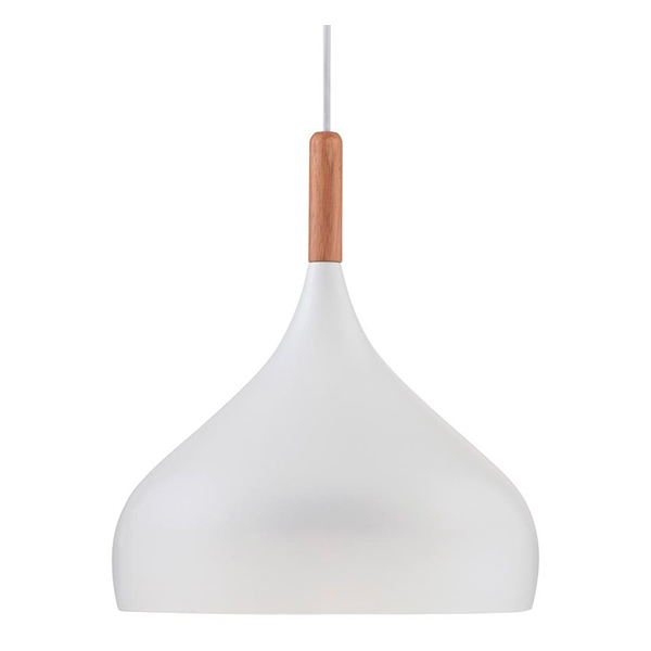 Deckenlampe mit weichen Linien, im nordischen Stil, mit Metallschirm in weißer Farbe und Zierblende aus Holz natur. Ihre Einfachheit und Schlichtheit bewirkt, dass sie sich perfekt in vielen Ambienten kombinieren lässt. Ideal zum Beleuchten der Küche, des Wohnzimmers, des Esszimmers...Kabel rund transparent. Deckenrosette Metall Farbe weiß. Mit Standard Schraubgewinde für Glühbirnen mit Gewinde E-27. Wir empfehlen die Verwendung von LED Glühbirnen. Das Kabel erlaubt die Höheneinstellung der Leuchte.
