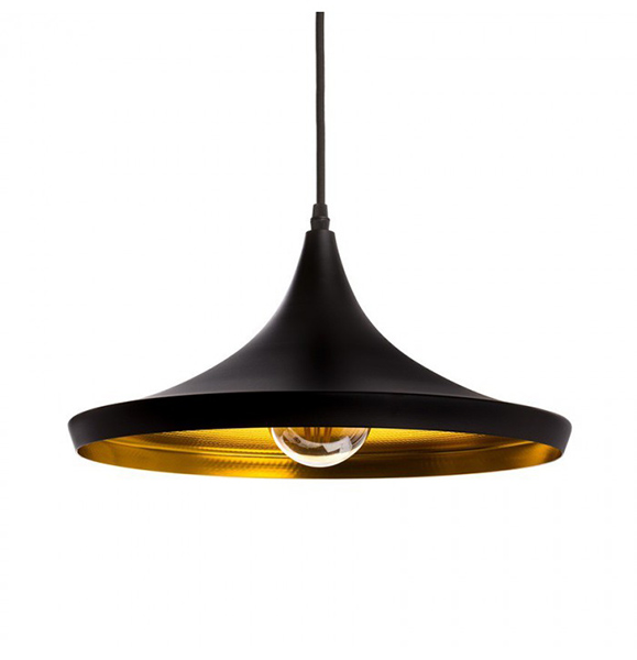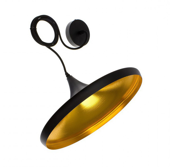 Lampe zum Aufhängen, inspiriert an dem Modell Beat Wide von Tom Dixon. Hergestellt aus Stahl von weißer Farbe, Oberfläche matt, die mit seinem goldfarbenem Innern kontrastiert. Kabel und Zierblende in schwarzer Farbe. Wir weisen besonders auf die goldene Farbe seines Innern hin, in welcher sich das Licht reflektiert und einen schönen kupferfarbenen Ton bekommt. Elegantes klassisches Design, das auch zu modernen Einrichtungen passt, sowohl in Wohnungen als auch in Büros und Geschäften. Sie kann allein oder in Kombination mit anderen Modellen aus der gleichen Kollektion eingesetzt werden.