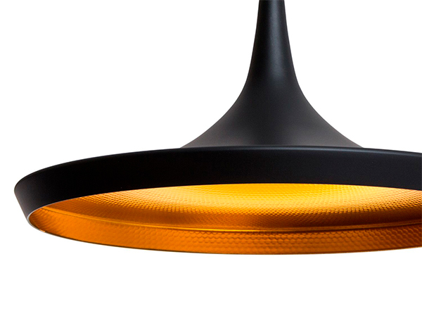 Lampe zum Aufhängen, inspiriert an dem Modell Beat Wide von Tom Dixon. Hergestellt aus Stahl von weißer Farbe, Oberfläche matt, die mit seinem goldfarbenem Innern kontrastiert. Kabel und Zierblende in schwarzer Farbe. Wir weisen besonders auf die goldene Farbe seines Innern hin, in welcher sich das Licht reflektiert und einen schönen kupferfarbenen Ton bekommt. Elegantes klassisches Design, das auch zu modernen Einrichtungen passt, sowohl in Wohnungen als auch in Büros und Geschäften. Sie kann allein oder in Kombination mit anderen Modellen aus der gleichen Kollektion eingesetzt werden.
