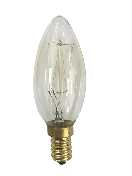 Dekorative Glühleuchte in Kerzenform. Sehr dekorativ, von rustikalem Aussehen. Glühfaden, wie die herkömmlichen Glühbirnen. Glas transparent Ideal für Lampen, bei denen die Glühbirne sichtbar ist (Arme, Kandelaber...).