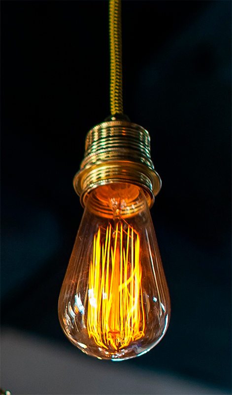 Dekorative Glühbirne, die antiken Glühlampen nachahmend. Dekorieren, schaffen Ambiente, beleuchten. Glas transparent, eiförmig, Kolbenform Replik der ersten Glühbirne Edison. Glühfäden aus Mikro-LEDs mit einer hohen Energieeffizienz (reduziert den Stromverbrauch bis zu 80%). Sie verbrauchen nur 4W, mit einer Äquivalenz von etwa 35W der herkömmlichen Glühbirne.