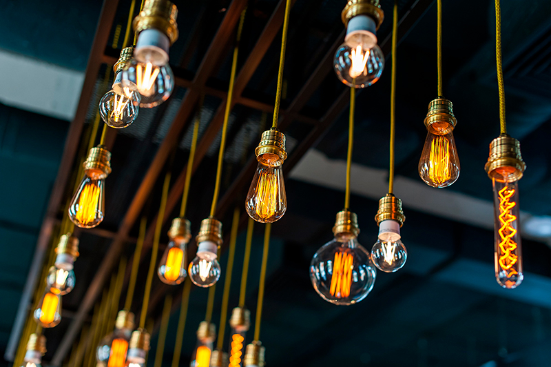 Dekorative Glühbirne, die antiken Glühlampen nachahmend. Dekorieren, schaffen Ambiente, beleuchten.