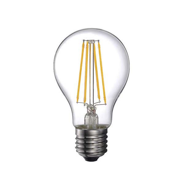 Standard mit transparentem Glas. Größe und Aussehen mit den herkömmlichen Glühbirnen identisch. Glühfäden aus Mikro-LEDs mit einer hohen Energieeffizienz (reduziert den Stromverbrauch bis zu 90%). Sie verbrauchen nur 6W, mit einer Äquivalenz von etwa 60W der herkömmlichen Glühleuchten.