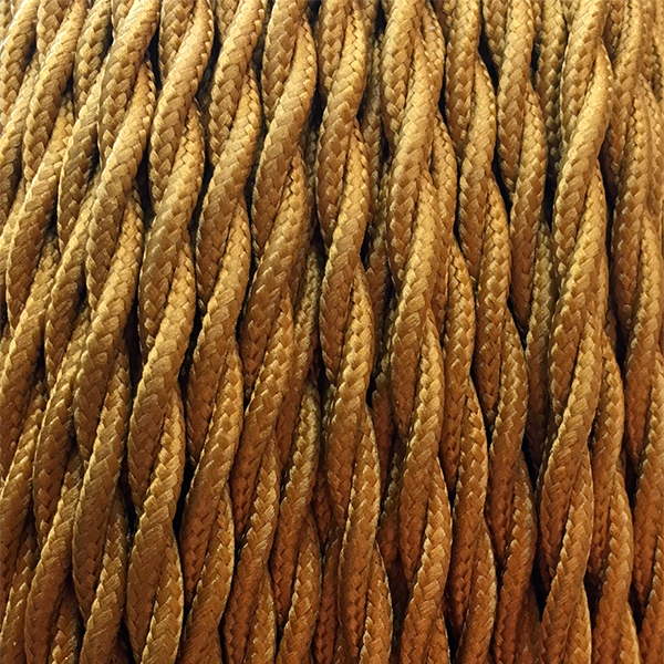 Dekoratives Elektrokabel mit Textilummantelung in kaffeebrauner Farbe. Diese Farbe kann, abhängig von der Zone, als «braun», «graubraun», «kastanienbraun», «kaffeebraun», «siena» oder «schokoladenbraun» benannt werden, ohne dass die Vorliebe für den einen oder anderen Begriff einen bestimmten Braunton bezeichnet.