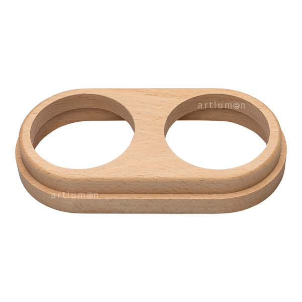 Doppelrahmen Holz für zwei Schalter aus der kombinierbaren Serie Hergestellt aus Buchenholz und mit Oberflächenbehandlung natur Holzrahmen von Hand bearbeitet. Sein Design in klassischen und schlichten Linien heben das Porzellan, mit dem sie kombiniert werden, hervor.
