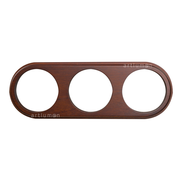 Dreifachrahmen Holz für drei Schalter aus der kombinierbaren Serie Hergestellt aus Buchenholz, gebeizt in dunkler kastanienbrauner Farbe Holzrahmen von Hand bearbeitet. Sein Design in klassischen und schlichten Linien heben das Porzellan, mit dem sie kombiniert werden, hervor.