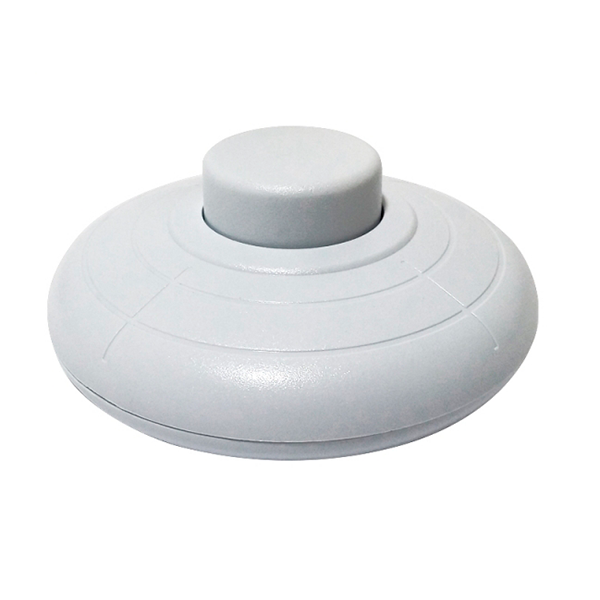 Zwischenschalter zur Montage im Kabel auf sehr einfache Weise. Man schneidet das Kabel auseinander und verbindet die Kabeladern in den zwei Enden des Schalters. Um ihn auf dem Boden zu legen und mit dem Fuß zu betätigen.