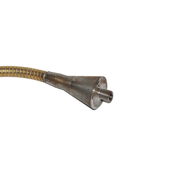 Arm aus Metall in Oberfläche Messing mit flexibler Rohrkonstruktion. Dieser flexible Arm aus Metall ist ideal, um flexible Tisch-oder Wandlampen zu kreieren und den Lichtstrahl auf den gewünschten Bereich zu richten. Innen hohl zum Durchführen des Stromkabels. Mit Gewinde an den Enden mit Gewindesteigung 10/100 (Typ universal für Lampen).