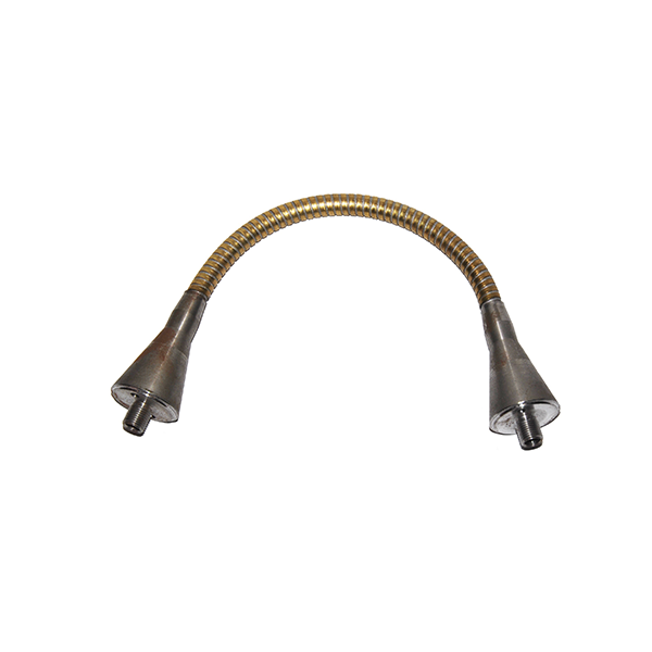 Arm aus Metall in Oberfläche Messing mit flexibler Rohrkonstruktion. Dieser flexible Arm aus Metall ist ideal, um flexible Tisch-oder Wandlampen zu kreieren und den Lichtstrahl auf den gewünschten Bereich zu richten. Innen hohl zum Durchführen des Stromkabels. Mit Gewinde an den Enden mit Gewindesteigung 10/100 (Typ universal für Lampen).