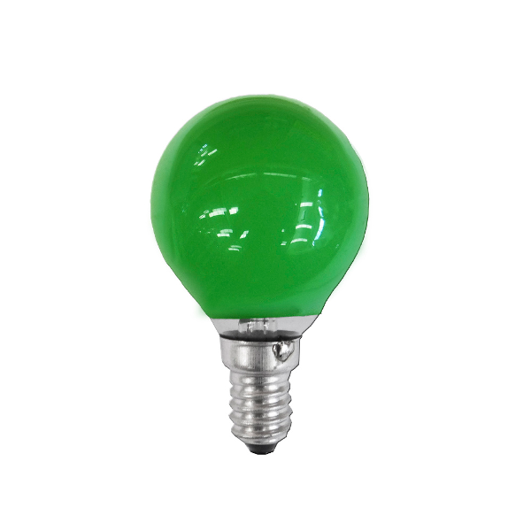 Glühleuchte Kugelform, von grüner Farbe, für Schraubgewinde E-14.