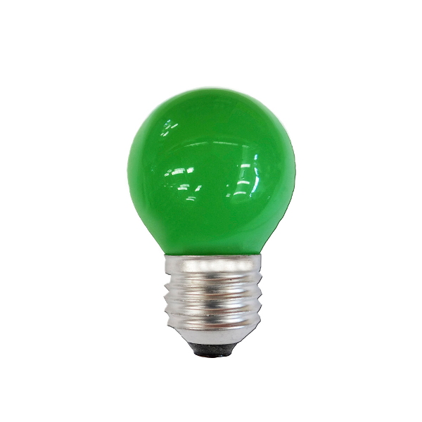 Glühleuchte Kugelform, von grüner Farbe, für Schraubgewinde E-27.
