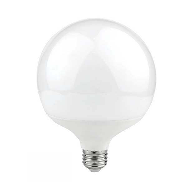 Dekorative Glühbirne in Globeform von großem Format (120mm Durchmesser). Mit einem Verbrauch von nur 18W, bietet sie eine hohe Leuchtkraft (1850 Lumen, Äquivalenz von etwa 150W). Nur eine von diesen Globes kann ein kleines/mittleres Zimmer beleuchten.