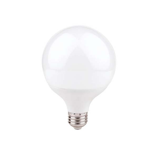 Dekorative Glühbirne in Globeform von 95mm Durchmesser. Mit einem Verbrauch von nur 15W, bietet sie eine hohe Leuchtkraft (1700 Lumen, Äquivalenz von etwa 100W). Nur eine von diesen Globes kann ein kleines/mittleres Zimmer beleuchten.