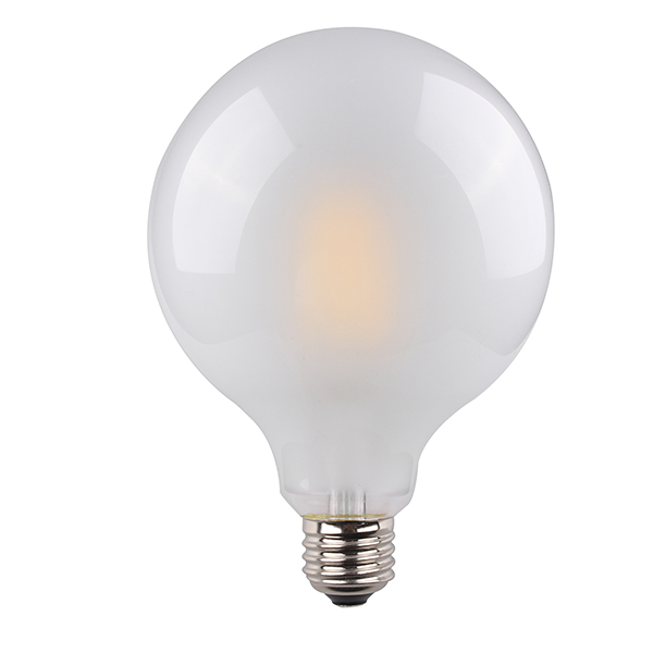 Globe LED, von 125mm Durchmesser, mit mattem Glas, pefekt die klassische Globe Glühleuchte matt simulierend. Sie hat keine Kunststoffbasis, die ihre Oberfläche verunstaltet. Ideal für Ausstattung oder Lampen, bei denen die Glühbirne unbedeckt bleibt. In ihrem Innern verfügt sie über Mikro-LED Glühfäden, von nur 8W Verbrauch (1055 Lumen), von warmem Licht (3200ºk). Standardgewinde E-27