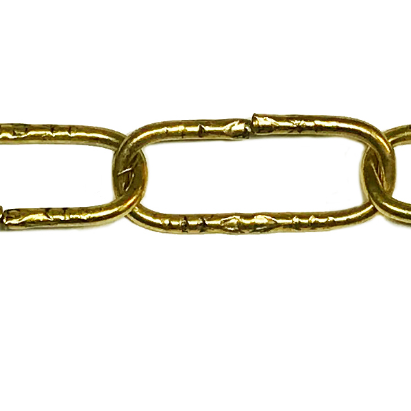 Lampenkette, hergestellt aus Messing mit goldfarben glänzender Oberfläche, Kettenglieder mit geprägten Verzierungen Dekorative Kette um Hängelampen zu befestigen. Ersatzteil um Ihre alte Lampe zu restaurieren oder zu reparieren, oder um eine neue herzustellen.