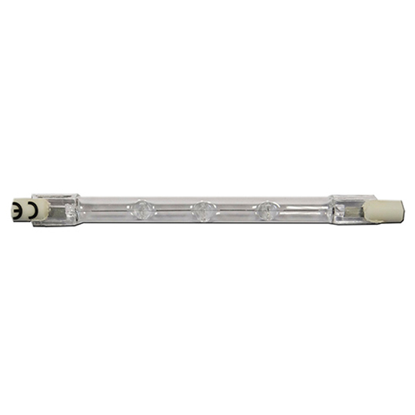 Halogenglühbirne Linienlampe lang, von 118mm Länge. Mit einem Verbrauch von 100W. Glas transparent Funktioniert direkt mit 220V. Für Sockeltyp R7s