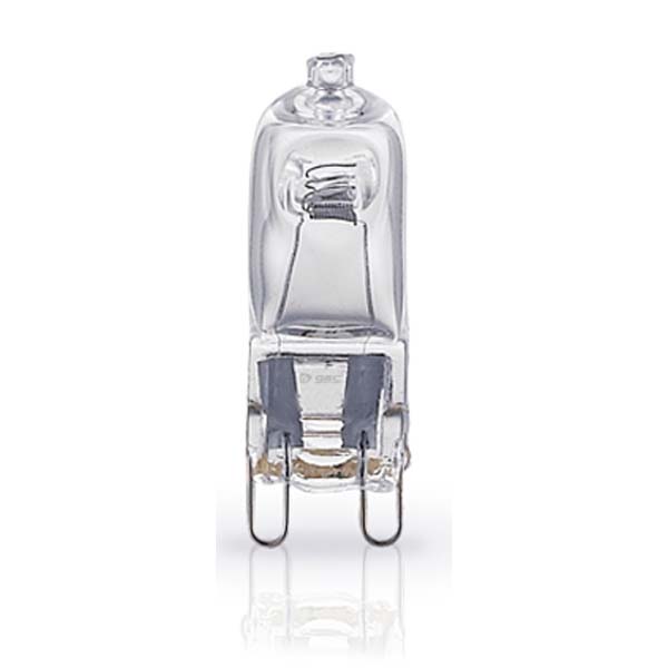 Öko-Halogenleuchte von 60W, äquivalent zu einer Halogenleuchte von 75W, mit dem gleichen Lichttyp (Halogen warm). Glas transparent Stiftsockel Halopin (G-9). Funktioniert direkt mit 220V (ohne Transformator)