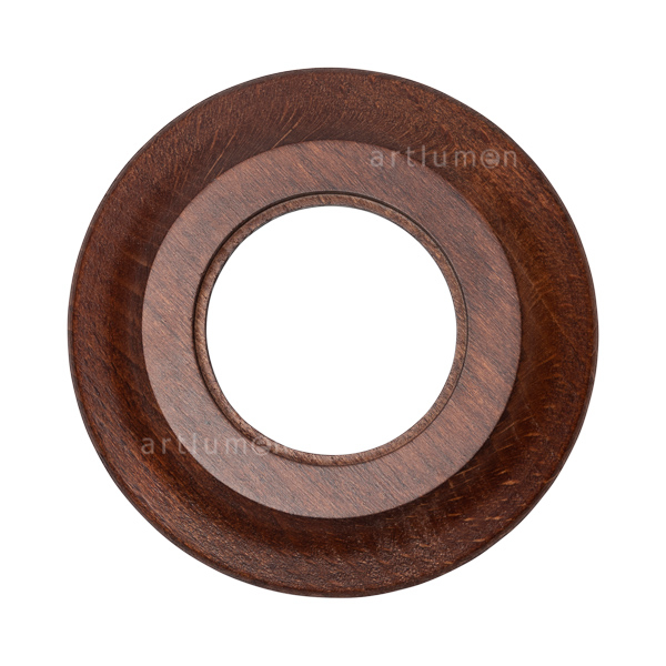Holzrahmen für die Installation eines Elements aus der Unterputzserie in Dose (geeignet für runde oder quadratische Unterputzdosen). Schönes Buchenholz, mit weichen gerundeten Flächen, handbearbeitet und gebeizt in der Farbe kastanienbraun dunkel.