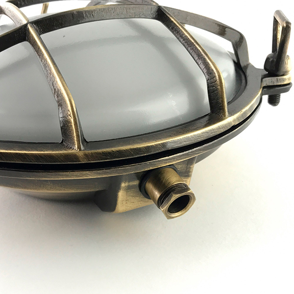 Sehr robuste Leuchte im Industrie-Look, aus Messing gefertigt.