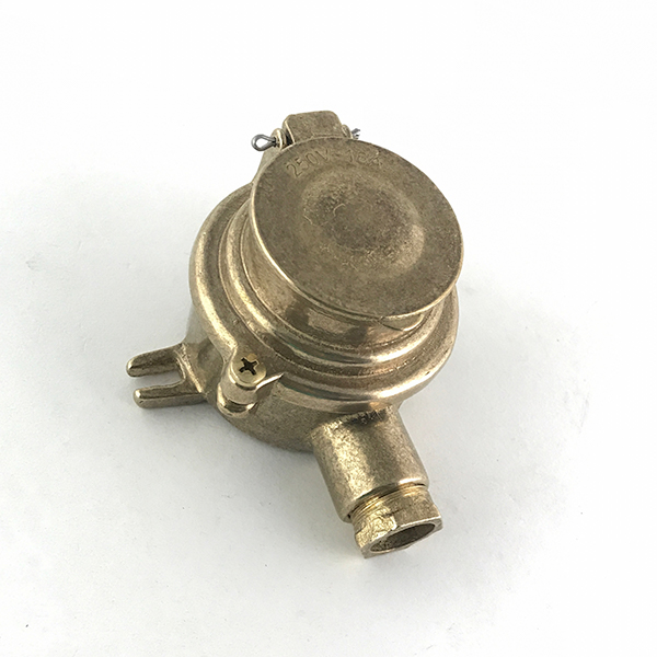 Schalter aus Messing für die offene Installation. Mit Einlass- und Auslassrohr
