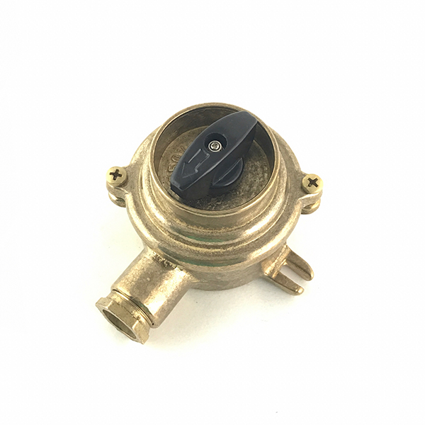 Schalter aus Messing für die offene Installation. Mit Einlass- und Auslassrohr
