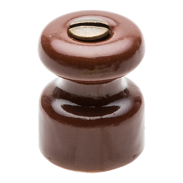 Isolator hergestellt aus Porzellan Farbe braun. Zubehör ideal zur Befestigung des geflochtenen Kabels an der Wand. Replik der herkömmlichen Isolatoren aus Porzellan. Sie werden ca. alle 50 cm angebracht.