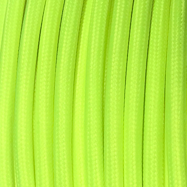 Rundes Kabel mit Textilummantelung in grellgelber, fluoreszierender Farbe. Dekoratives Kabel ideal um Ihre eigenen Lampen und Hängeleuchten zu entwerfen. Dieses Produkt erfüllt die europäischen Sicherheitsnormen.