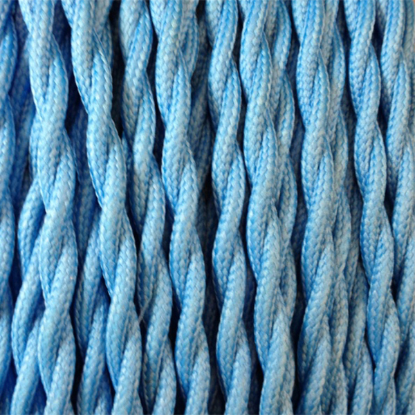 Textilkabel geflochten mit Textilummantelung Farbe himmelblau. Himmelfarben, auch himmelblau genannt, kobalt, kobaltblau oder babyblau, ist eine semi-helle, cyanblaue Farbe intensiver Sättigung. Man sagt, dass sie dem Farbton des wolkenlosen, nördlichen Taghimmels entspricht. Ändern Sie die Dekoration in jedweden Teil Ihres Hauses mit diesen dekorativen Kabeln.