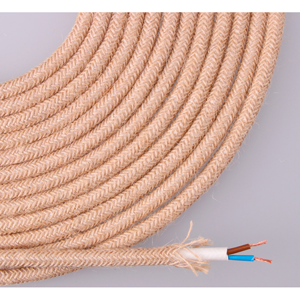 Textilkabel, Oberfläche rustikale Kordel. Seine Textilummantelung aus Juteseil verleiht ihr ein rustikales Aussehen. Es hat eine Dicke von 7mm Durchmesser (wir verfügen über dickere Kabel mit der gleichen Oberfläche). Ideal für Vintageeinrichtungen. Perfekt für rustikale Hängeleuchten nach Maß.