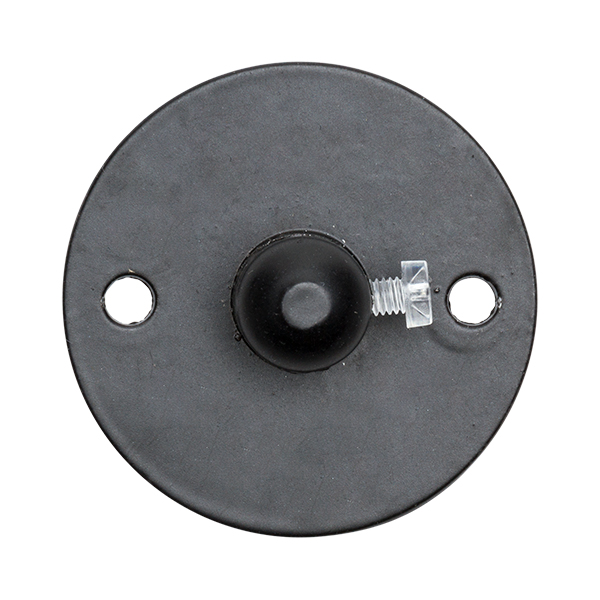 Kabelbefestigung hergestellt aus Metall Farbe schwarz matt mit einer Zugentlaster in seinem Innern, einstellbar durch Schraube. Es ist eine runde Montageplatte, die an Decken oder Wand angeschraubt werden kann, ideal für Installationen mit dekorativen Textilkabeln. Perfektes Zusatzteil, um Ihre Leuchten mit verschiedenen Kabelabzweigungen zu kreieren.