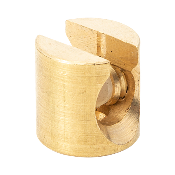 Metallteil mit Oberfläche Messing zum Befestigen des Kabels an der Wand oder Decke. Verfügt über ein Loch in der Basis um angeschraubt zu werden. Durch seine seitliche Schraube regulieren wir den Druck der Zugentlaster. Die Schraube hat einen Kunststoffisolator in seinem Innern, um das Kabel nicht zu beschädigen.