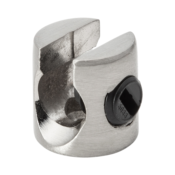 Metallteil mit Oberfläche Stahl zum Befestigen des Kabels an der Wand oder Decke. Verfügt über ein Loch in der Basis um angeschraubt zu werden. Durch seine seitliche Schraube regulieren wir den Druck der Zugentlaster. Die Schraube hat einen Kunststoffisolator in seinem Innern, um das Kabel nicht zu beschädigen.