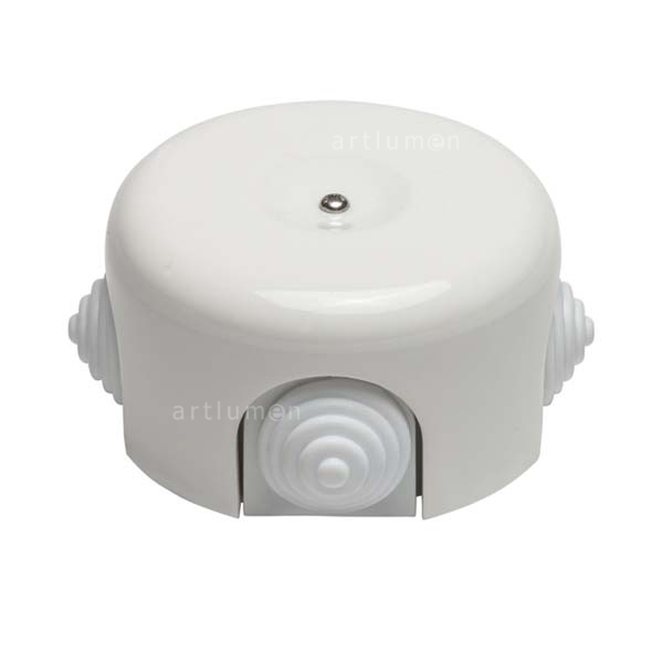 Gehäuse für Stromkabel, hergestellt aus Porzellan. Durch sein schönes Design eignet es sich sehr für sichtbare Installationen. Abmessungen: Durchmesser=78mm. Höhe=43mm.