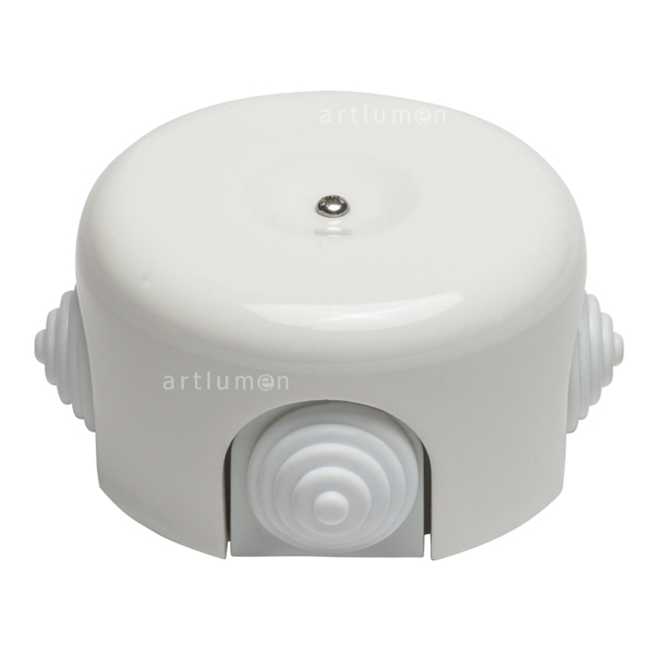 Gehäuse für Stromkabel, hergestellt aus Porzellan. Durch sein schönes Design eignet es sich sehr für sichtbare Installationen. Abmessungen: Durchmesser=90mm. Höhe=45mm.