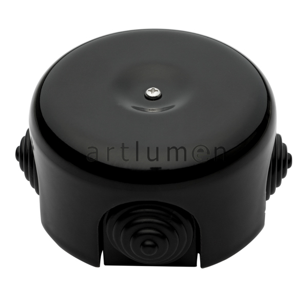 Kabelgehäuse, um die Stromverbindungskabel unterzubringen. Hergestellt aus Porzellan schwarzes Farbe. Ideale Ergänzung für Aufputzmontagen mit sehr dekorativen Textilkabeln. Vier Kabeleingänge, geschützt mit flexiblen Gummikegeln in der gleichen Farbe wie das Gehäuse.