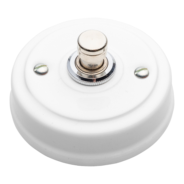 Schalter mit Aus-Wechselschaltung betätigt durch einen Metallknopf Das Licht wird angeschaltet, indem man auf den Knopf drückt. Lassen sich perfekt mit unseren Steckdosen aus Porzellan aus der gleichen Serie kombinieren.