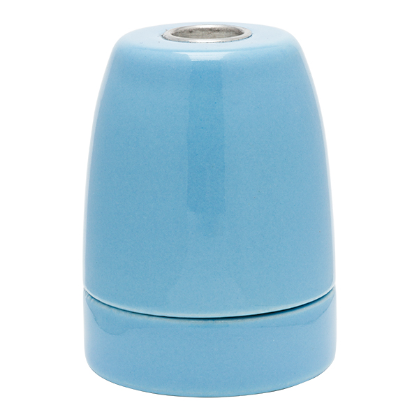 Lampenfassung aus blauem Porzellan. Korpus glatt aus Porzellan beschichtet Farbe blau. Vintagestil. Schraubgewinde für Glühbirnen mit Standardgewinde E-27. Oberer Teil mit Gewindesteigung 10/100. Klemmanschluss des Kabels mit Schrauben.