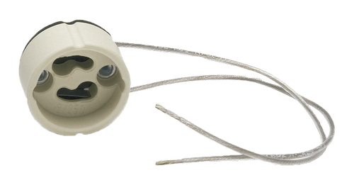 Lampenfassung für Glühbirnen, Halogen und LEDs GU-10 Keramikbasis mit Kabel von 15 cm von hohem Wärmewiderstand.